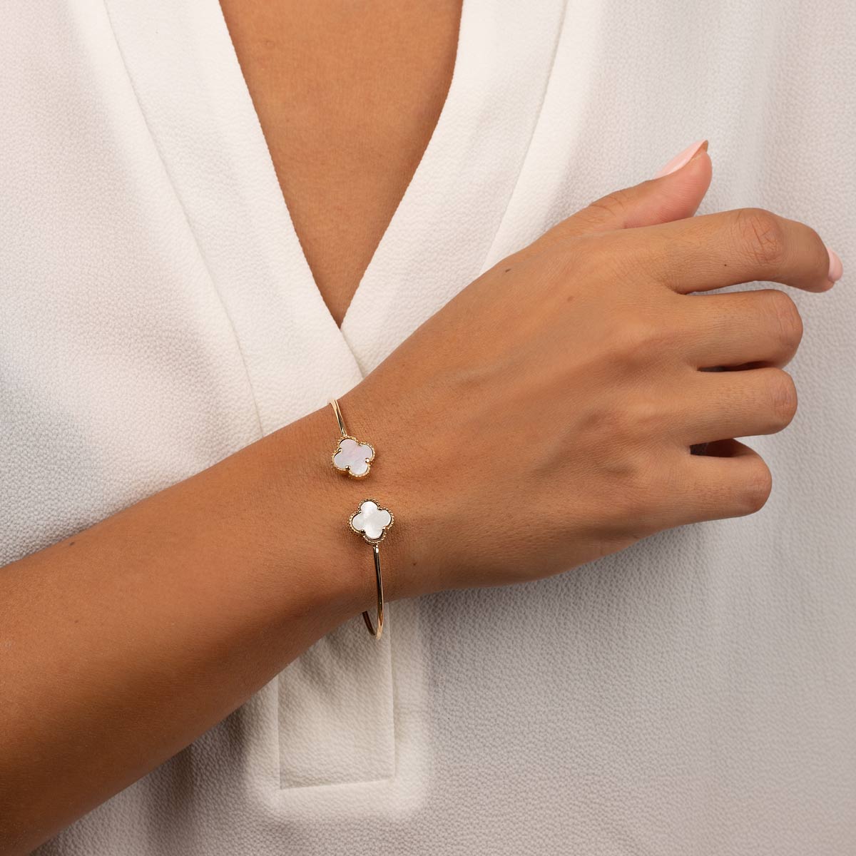 با النگو طلا بنگل ونکلیف توپی سفید استایل خود را زیباتر کنید.